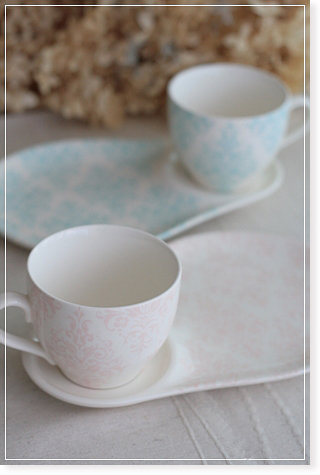 唐草の転写紙のカップ&ソーサー。